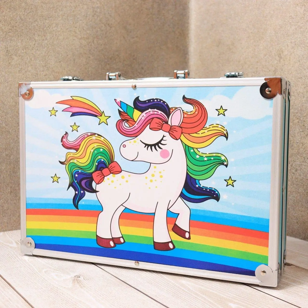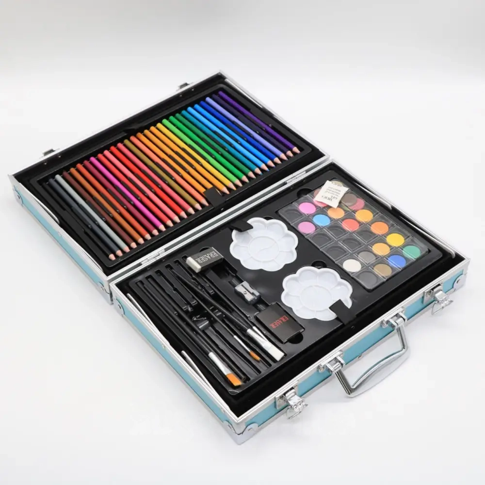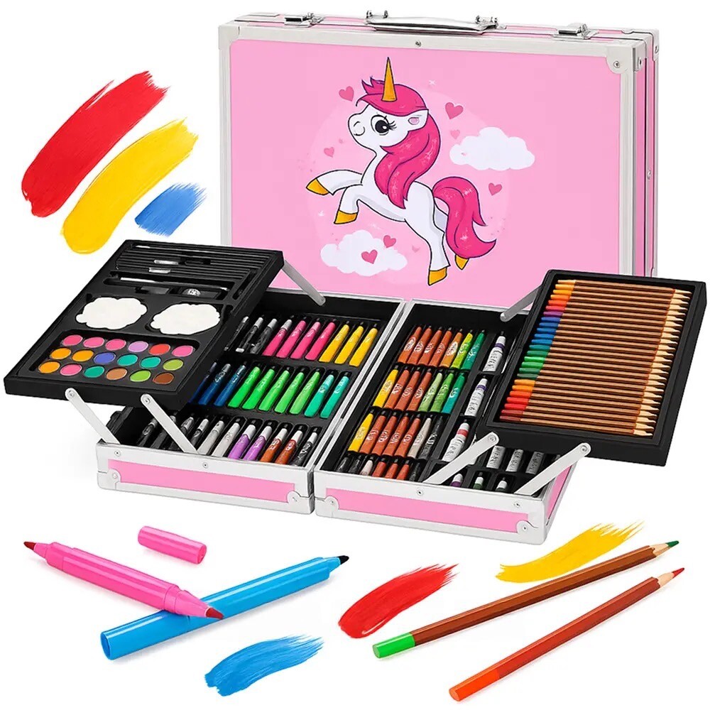 Розвивайте творчий потенціал вашої дитини з нашим набором для малювання у зручній валізі. Цей комплект складається з 145 якісних інструментів, включаючи фарби, олівці, фломастери, пензлі та багато інших матеріалів, що дозволяє малюкам створювати яскраві та оригінальні роботи.