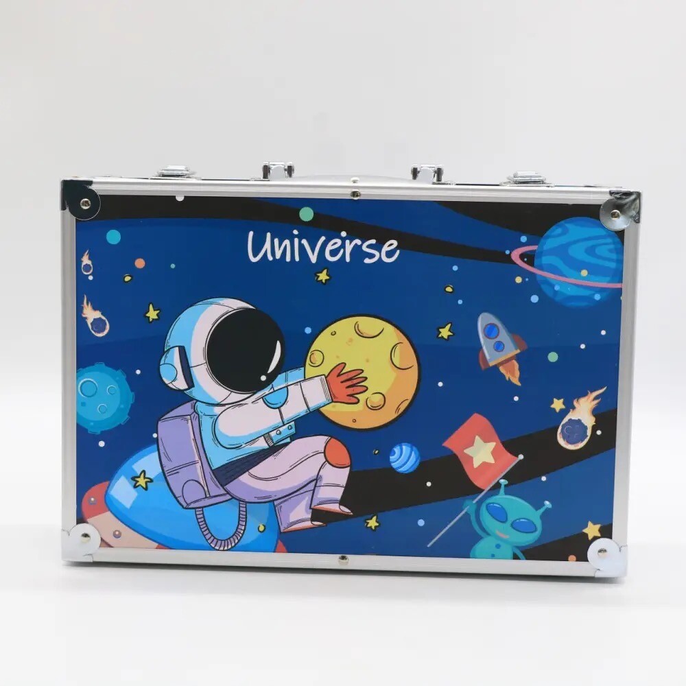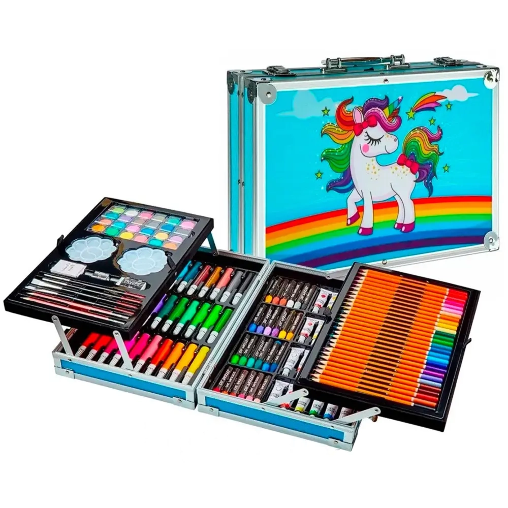 Розвивайте творчий потенціал вашої дитини з нашим набором для малювання у зручній валізі. Цей комплект складається з 145 якісних інструментів, включаючи фарби, олівці, фломастери, пензлі та багато інших матеріалів, що дозволяє малюкам створювати яскраві та оригінальні роботи.